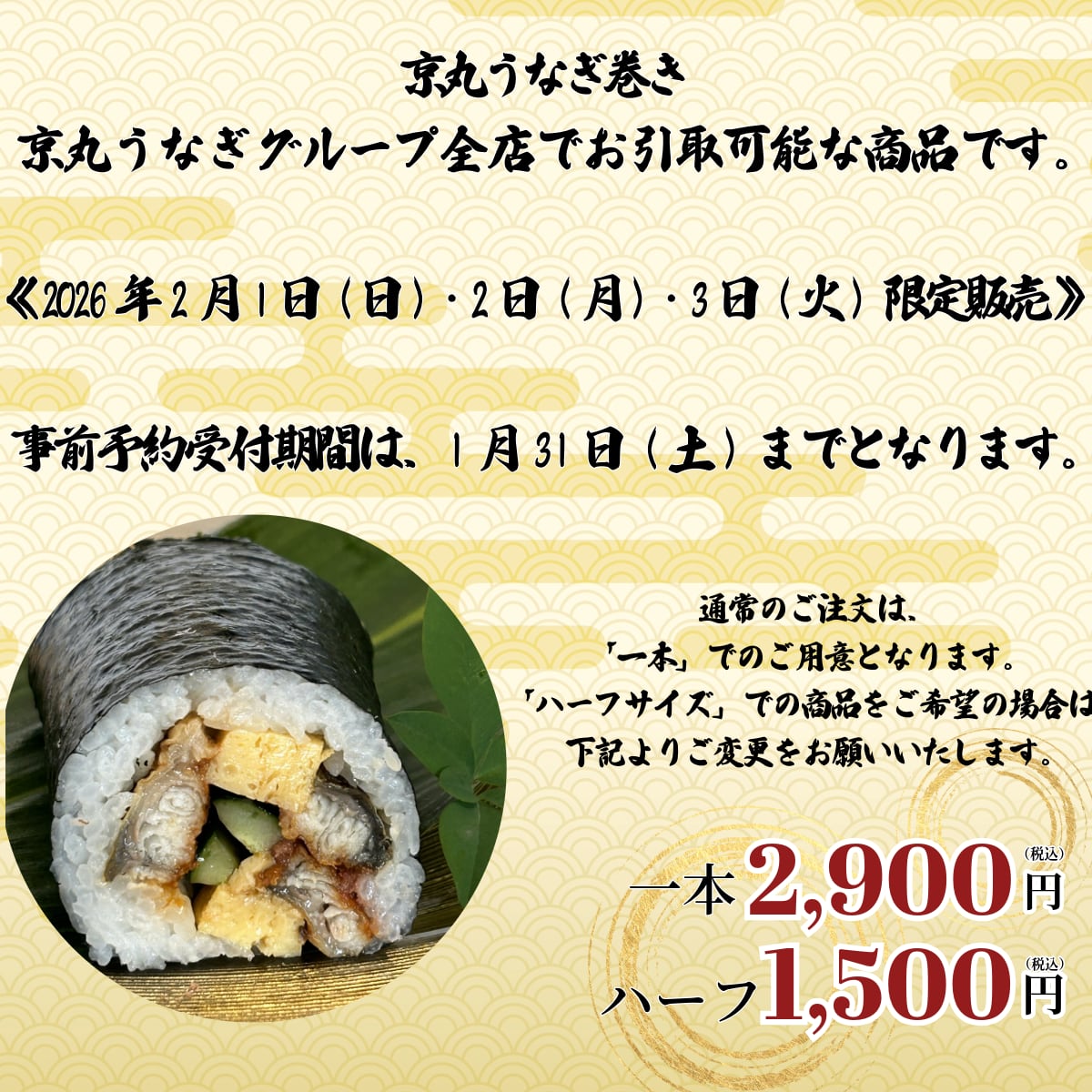 事前予約受付期間は、1月31日(土)までとなります。