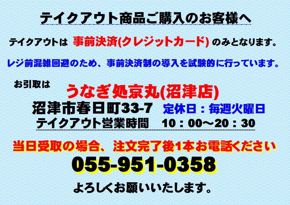 本商品は、「うなぎ処 京丸」店頭での引き渡し限定商品です。発送は行っておりませんのでご注意ください。