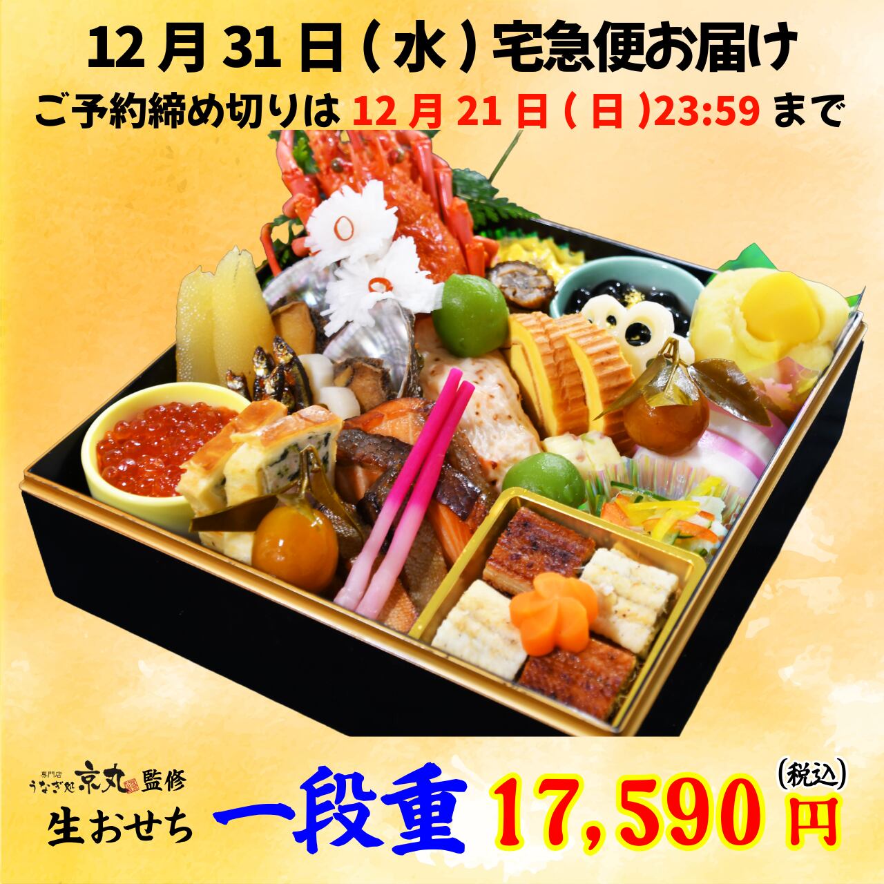 沼津港のうなぎ処京丸が自信をもっておすすめする、冷蔵・生おせちです。